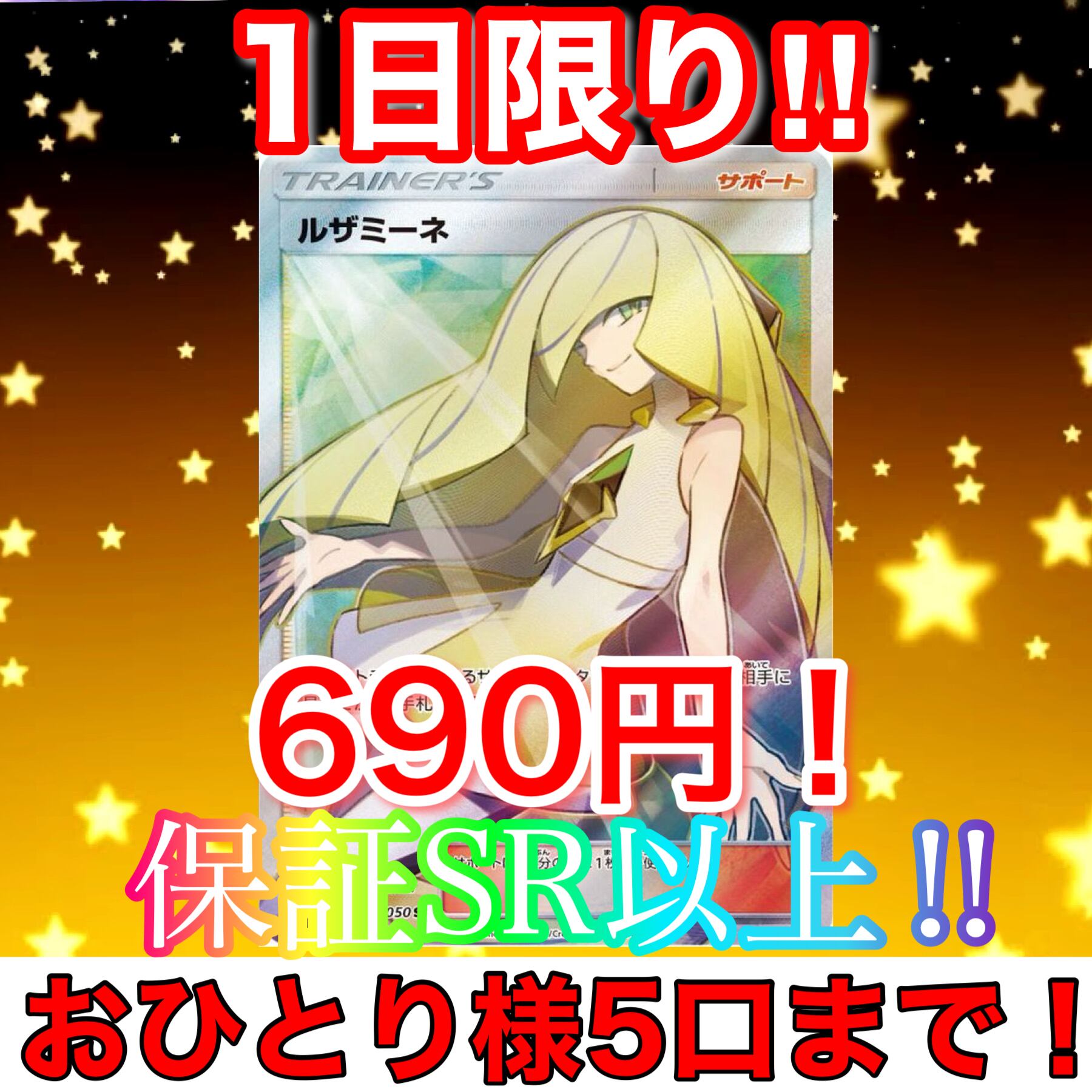 1日限り!! ルザミーネSRぶち抜きオリパ‼️ おひとり様5口まで!! ポケカ オリパ